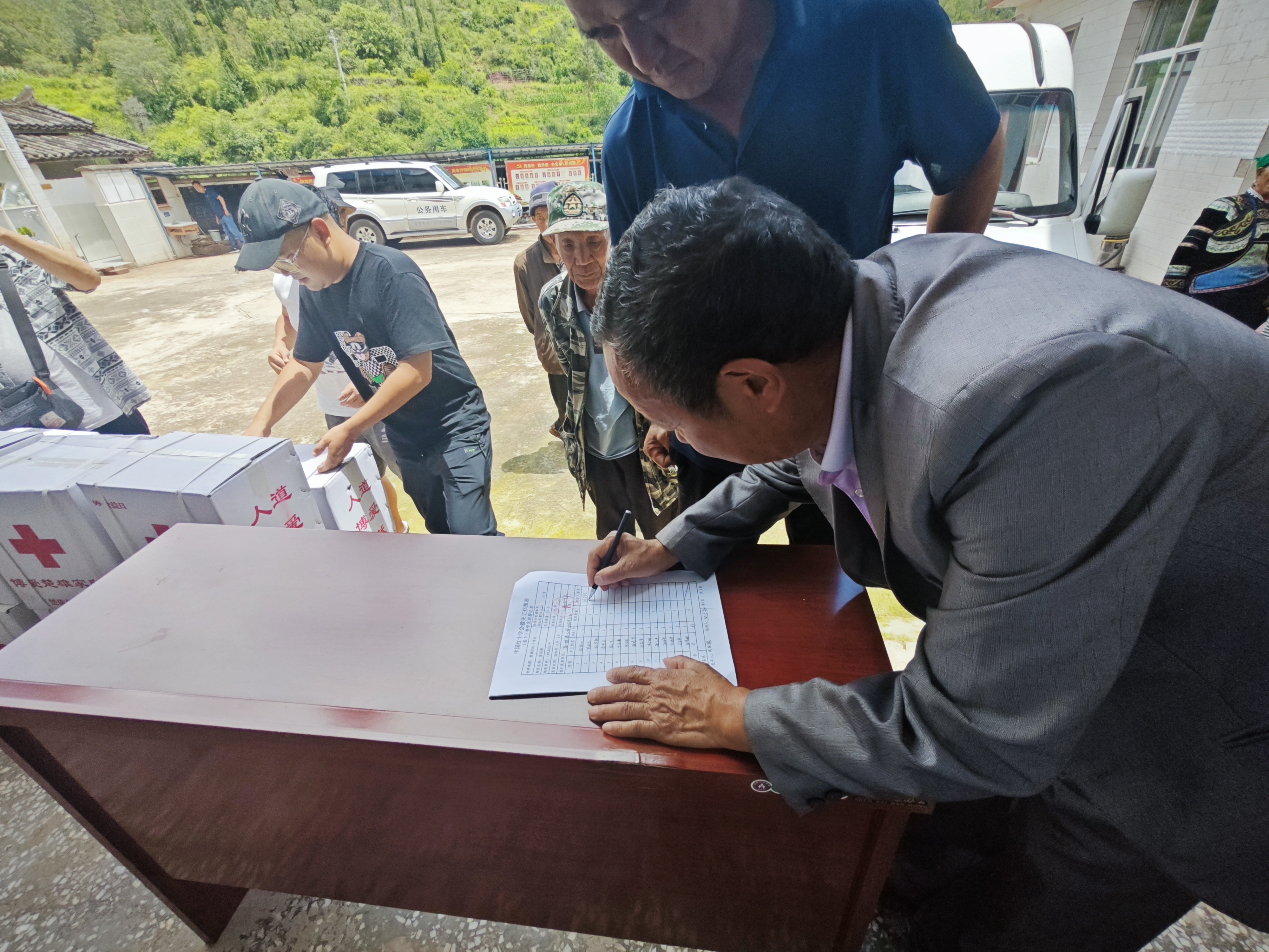 2024年8月8日上午,州广播电视局党组书记、局长何媛媛带队到乡村振兴联系点武定县高桥镇己梯村委会开展救灾物资发放活动。