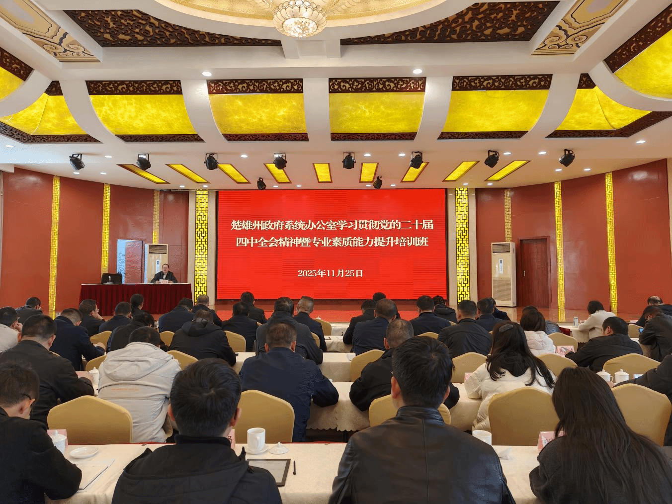 为深入学习贯彻党的二十届四中全会和习近平总书记关于办公厅工作的重要讲话和重要指示批示精神,持续加强全州政府系统办公室干部思想淬炼、政治历练、实践锻炼、专业训练,不断提升办公室“三服务”工作质效。11月24日至25日,楚雄州人民政府办公室举办楚雄州政府系统办公室学习贯彻党的二十届四中全会精神暨专业素质能力提升培训班。