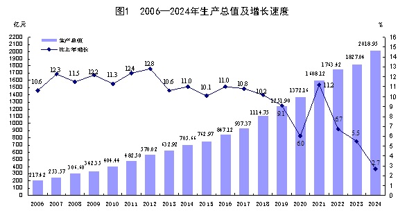 2.生产总值、各产业增加值绝对数按现价计算,增长速度按不变价格计算。